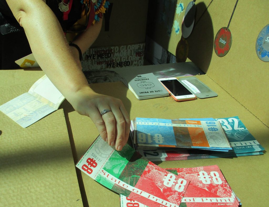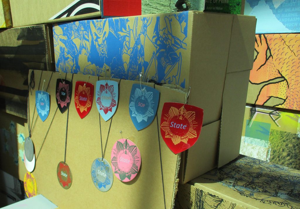 The STATE OF PRINT explores the current state of nations and the notion that everything that formalises a nation state is printed – money, maps, laws, information, governments, monarchies etc. At a time when ‘the current state’ of nation power globally is inflexible and dogmatic, this project will provide a creative and theoretical antidote to the current paradigm. The STATE OF PRINT can be manifest in response to any space at any time as both a sculptural form and as a platform for activity – in the form of image production, poetry, debate, performance, music and film.